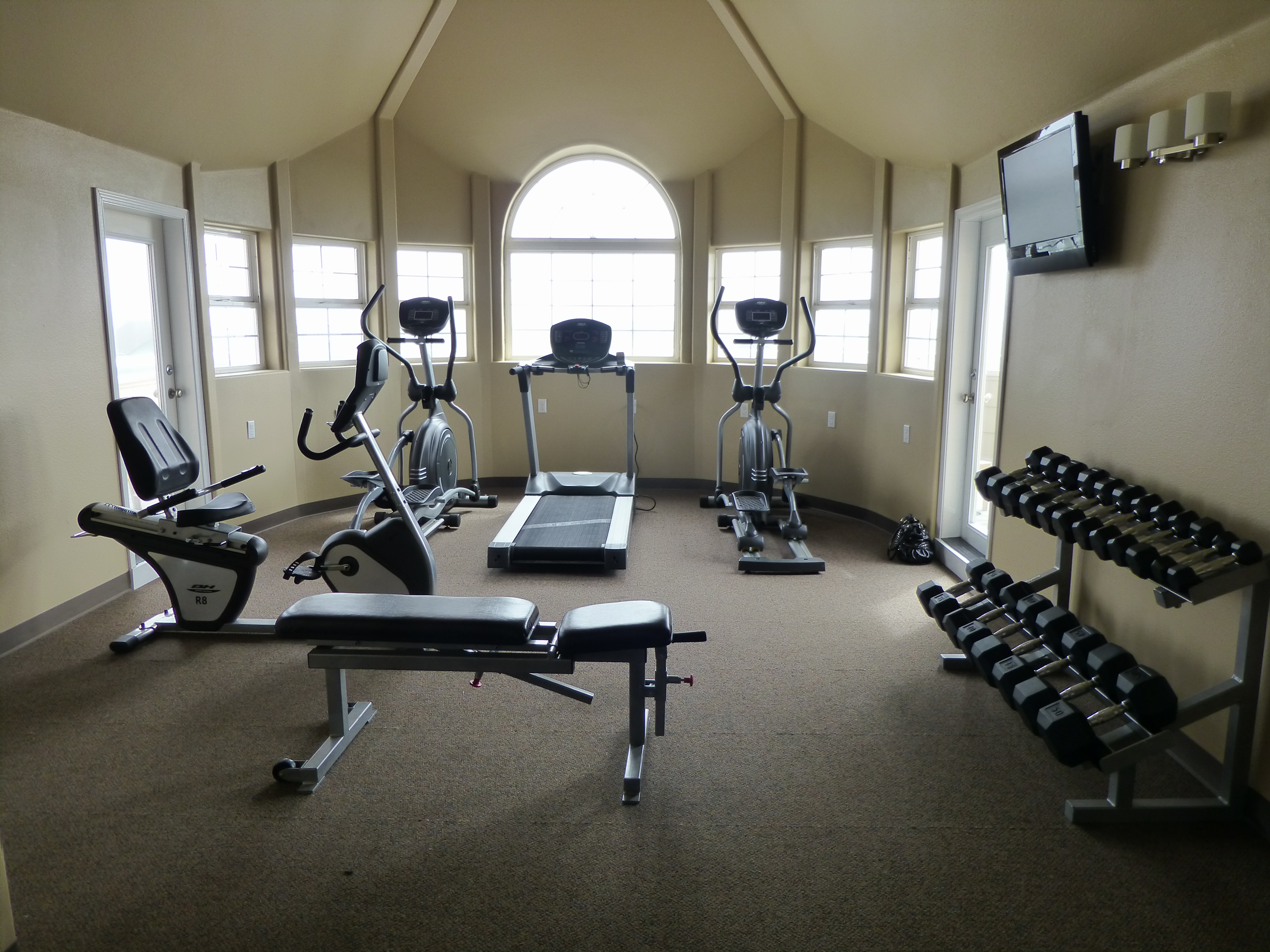 television and DVD, hardwood floors